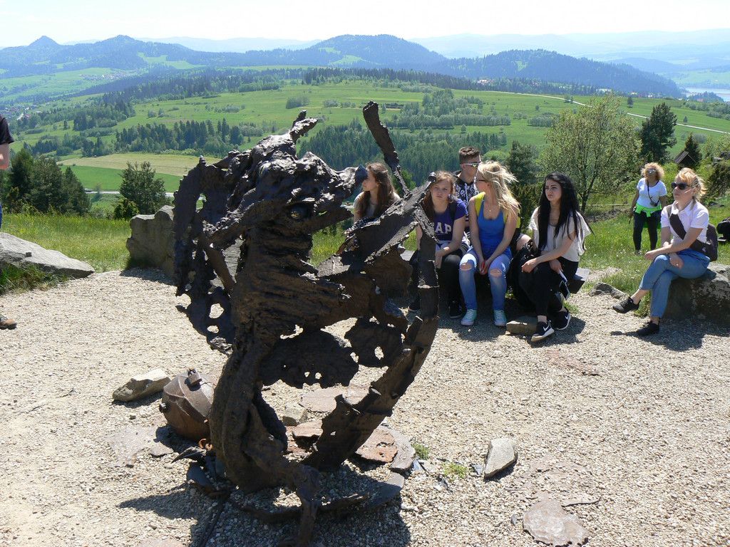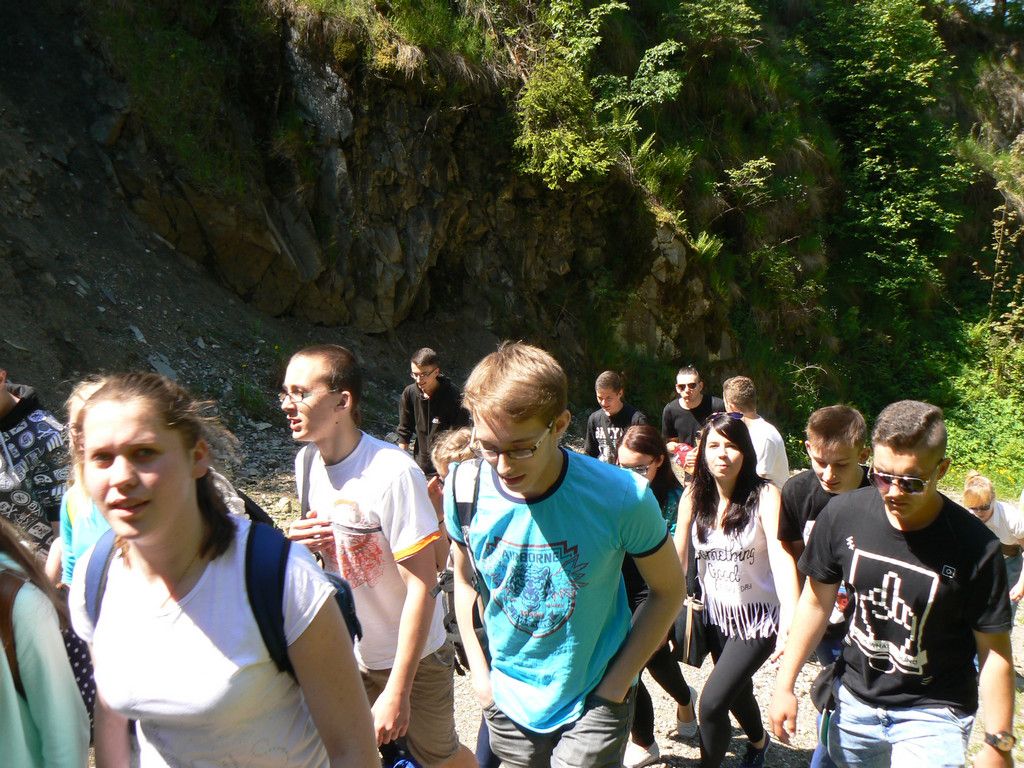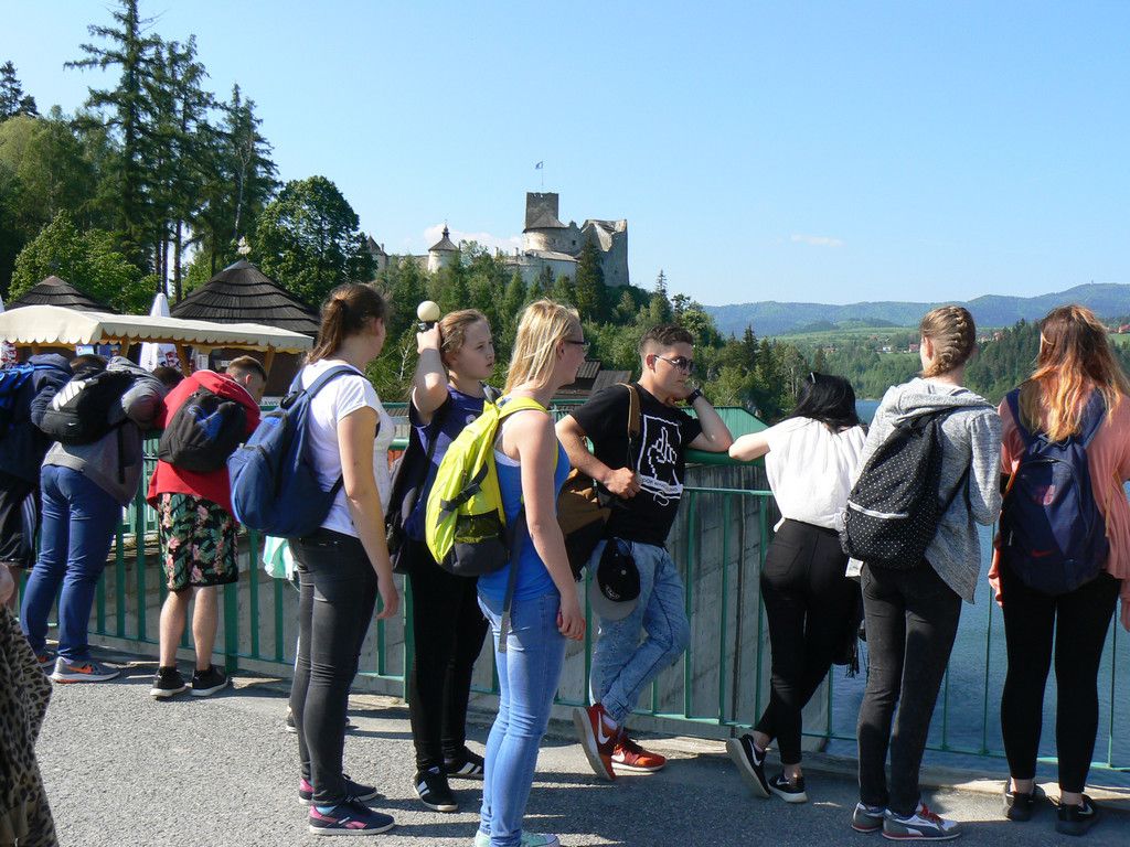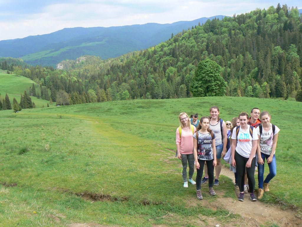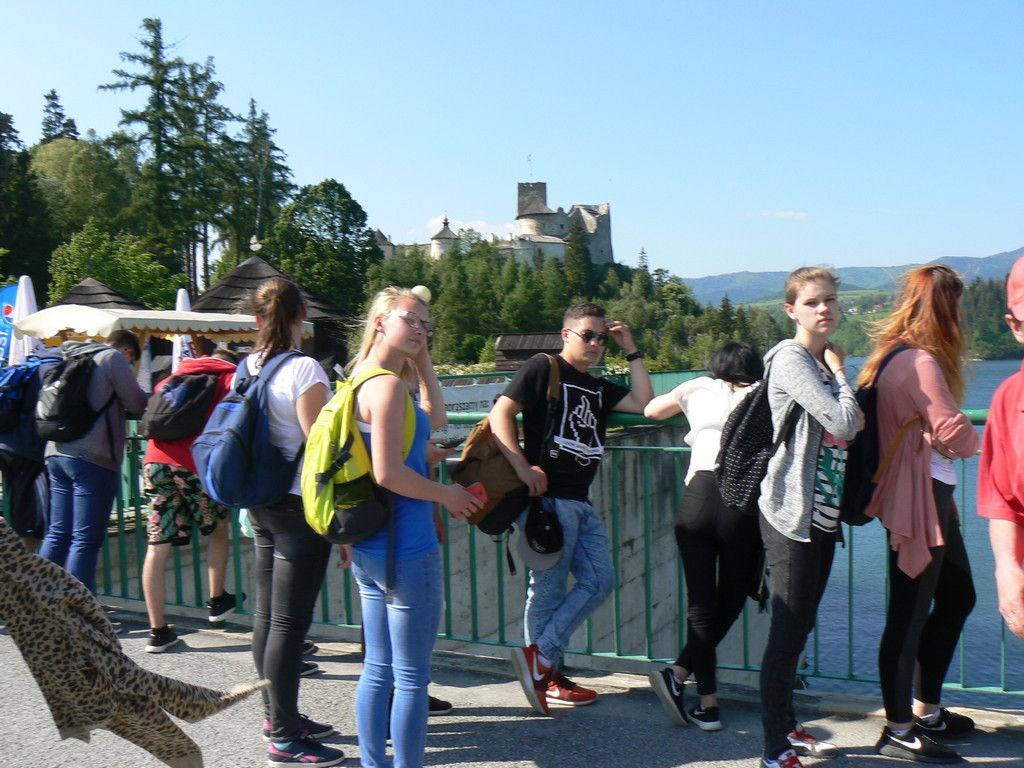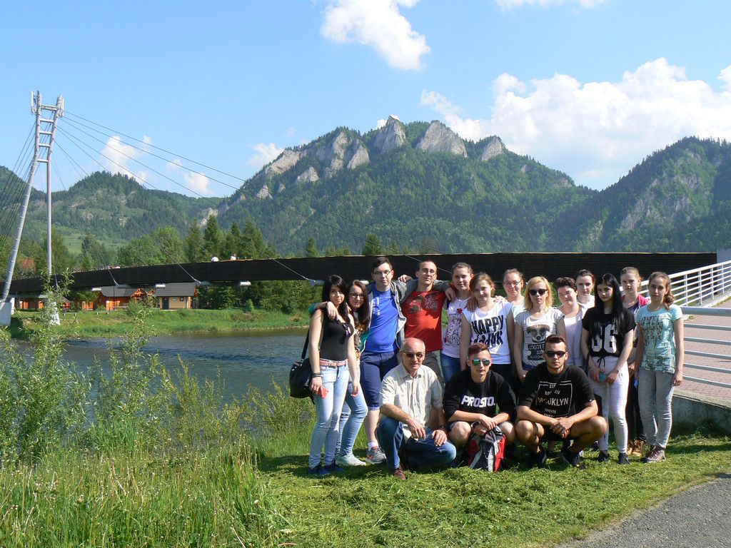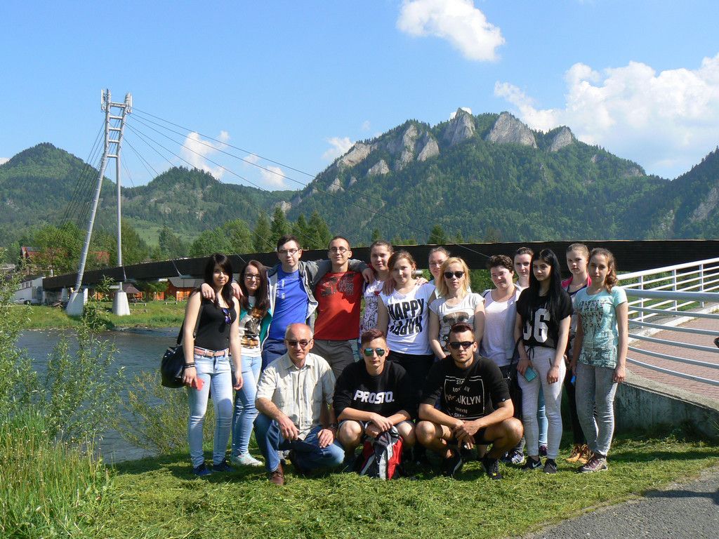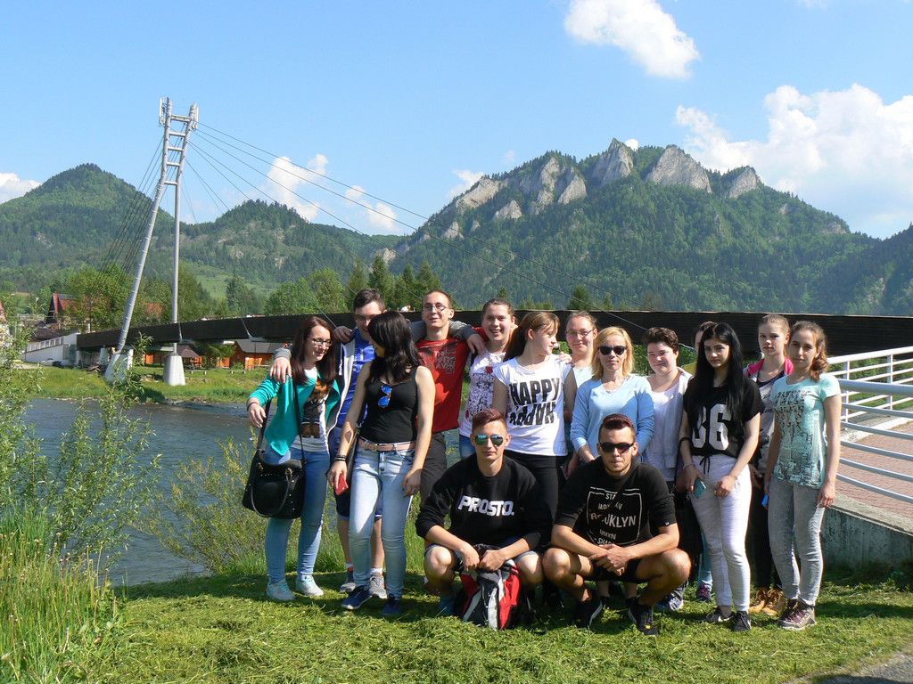 W dniach 23-25 maja uczniowie klas 1tg,1tb,1ta oraz 2tg i 3tg wybrali się na wycieczkę w Pieniny. Mimo wczesnej pory (wyjazd był o 7 rano) wszystkim dopisywał dobry humor. Pierwszym punktem naszej wyprawy była góra Wdżar, na której mają miejsce anomalia magnetyczne. Następnie zwiedziliśmy, wpisany na listę UNESCO, kościółek w Dębnie. Kolejnym ciekawym obiektem, w którym zaczerpnęliśmy garstkę teorii i troszkę praktyki z zakresu geodezji była elektrownia wodna w Czorsztynie. Potem udaliśmy się do zamku w Niedzicy, który słynie z legendy o duchu Brunhildy. Miłą niespodzianką był dla nas przepływ gondolą po zalewie Czorsztyńskim. Po ciekawie spędzonym dniu dotarliśmy do pensjonatu,, Willa Konradówka’’, w którym czekał na nas pyszny obiad. Drugiego dnia po śniadaniu wyruszyliśmy w góry. Pierwszym szczytem, który zdobyliśmy były Trzy Korony. Po forsownym marszu wszyscy czekali już tylko na obiad i odpoczynek. Popołudnie spędziliśmy w Nowym Targu, a wieczorem zasiedliśmy do wspólnego ogniska. Trzeciego dnia wycieczki wędrowaliśmy wąwozem Homole i zdobyliśmy najwyższy szczyt Pienin –Wysoką.