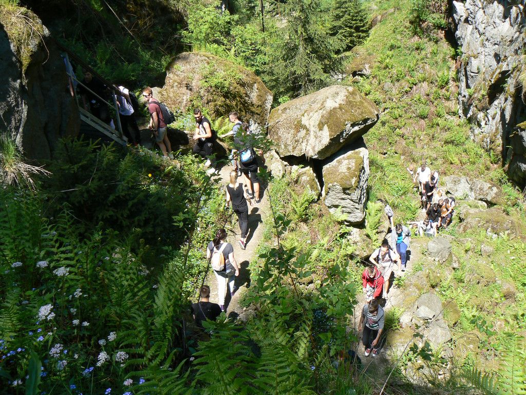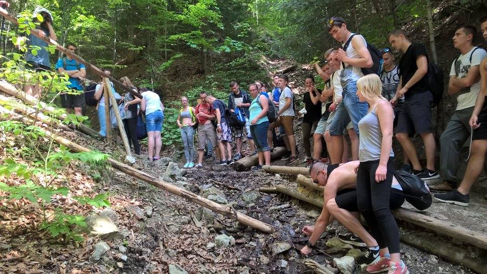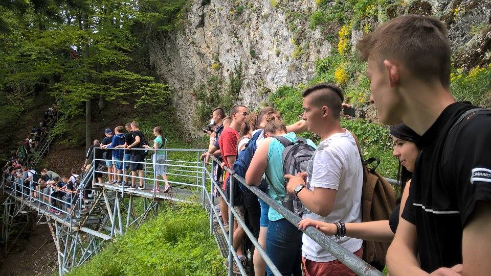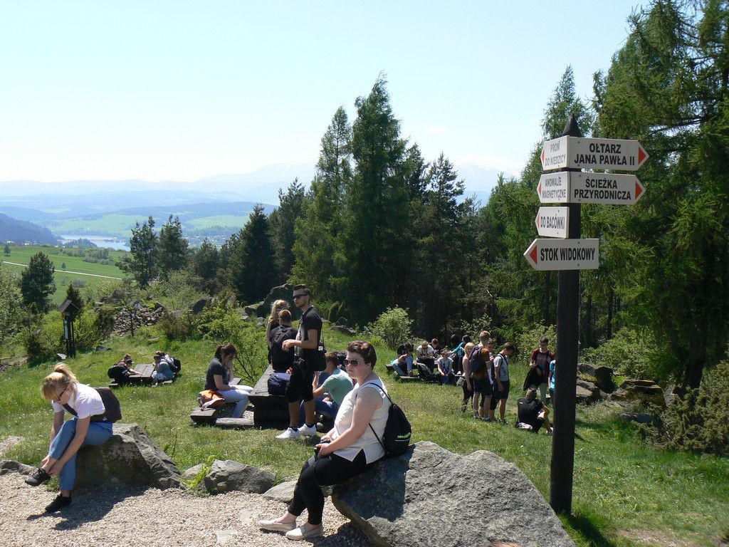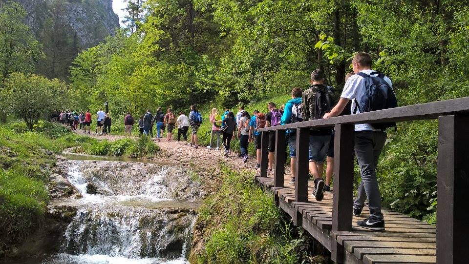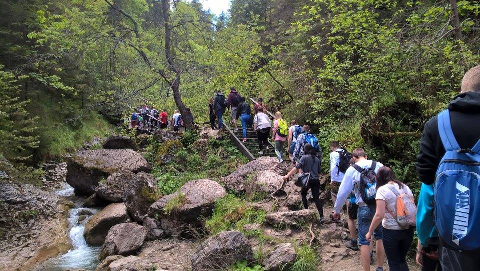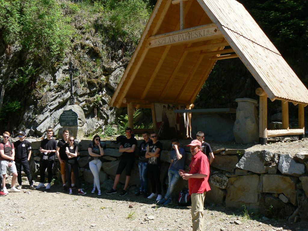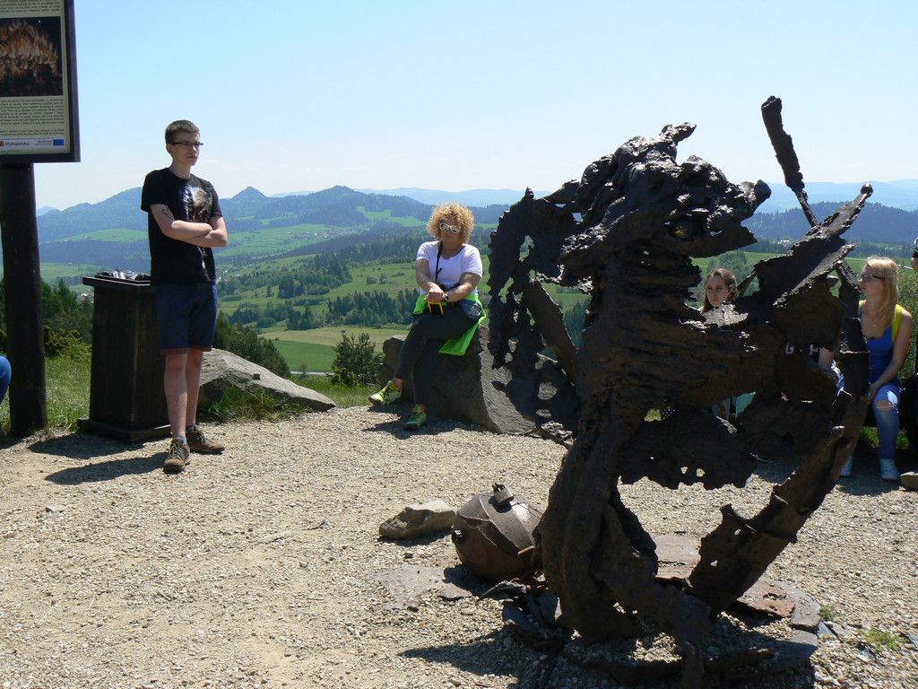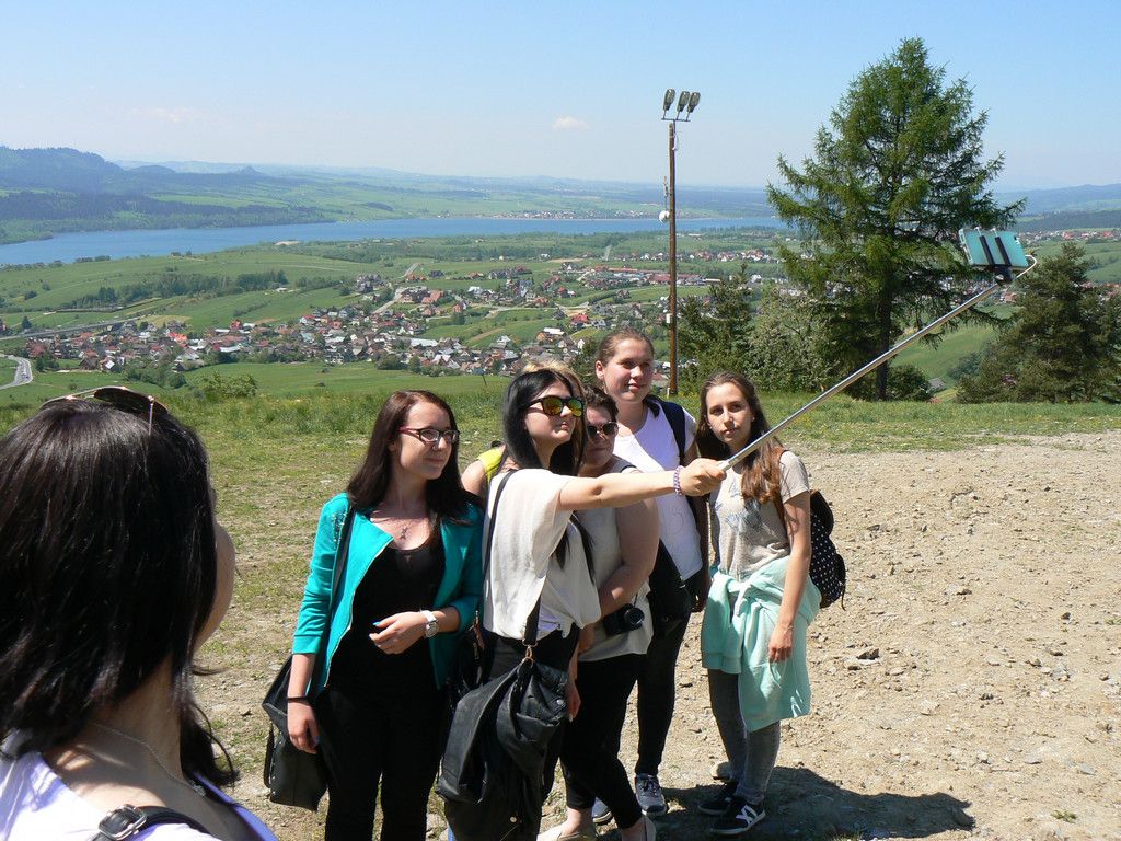 W dniach 23-25 maja uczniowie klas 1tg,1tb,1ta oraz 2tg i 3tg wybrali się na wycieczkę w Pieniny. Mimo wczesnej pory (wyjazd był o 7 rano) wszystkim dopisywał dobry humor. Pierwszym punktem naszej wyprawy była góra Wdżar, na której mają miejsce anomalia magnetyczne. Następnie zwiedziliśmy, wpisany na listę UNESCO, kościółek w Dębnie. Kolejnym ciekawym obiektem, w którym zaczerpnęliśmy garstkę teorii i troszkę praktyki z zakresu geodezji była elektrownia wodna w Czorsztynie. Potem udaliśmy się do zamku w Niedzicy, który słynie z legendy o duchu Brunhildy. Miłą niespodzianką był dla nas przepływ gondolą po zalewie Czorsztyńskim. Po ciekawie spędzonym dniu dotarliśmy do pensjonatu,, Willa Konradówka’’, w którym czekał na nas pyszny obiad. Drugiego dnia po śniadaniu wyruszyliśmy w góry. Pierwszym szczytem, który zdobyliśmy były Trzy Korony. Po forsownym marszu wszyscy czekali już tylko na obiad i odpoczynek. Popołudnie spędziliśmy w Nowym Targu, a wieczorem zasiedliśmy do wspólnego ogniska. Trzeciego dnia wycieczki wędrowaliśmy wąwozem Homole i zdobyliśmy najwyższy szczyt Pienin –Wysoką.