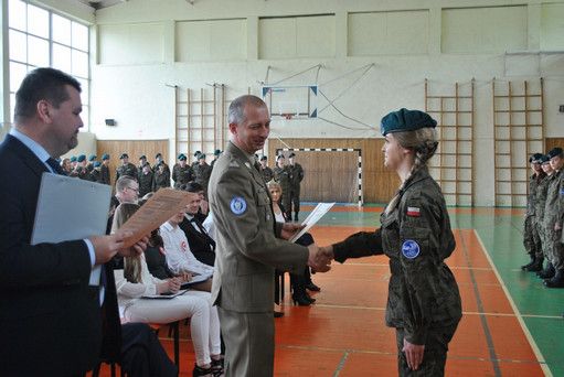Podczas apelu z-ca dowódcy-szef sztabu 21 dywizjonu artylerii przeciwlotniczej im. gen. dyw. Ludwika Zająca mjr Mirosław Szpunar wręczył absolwentom X LO certyfikaty ukończenia szkolenia wojskowego.