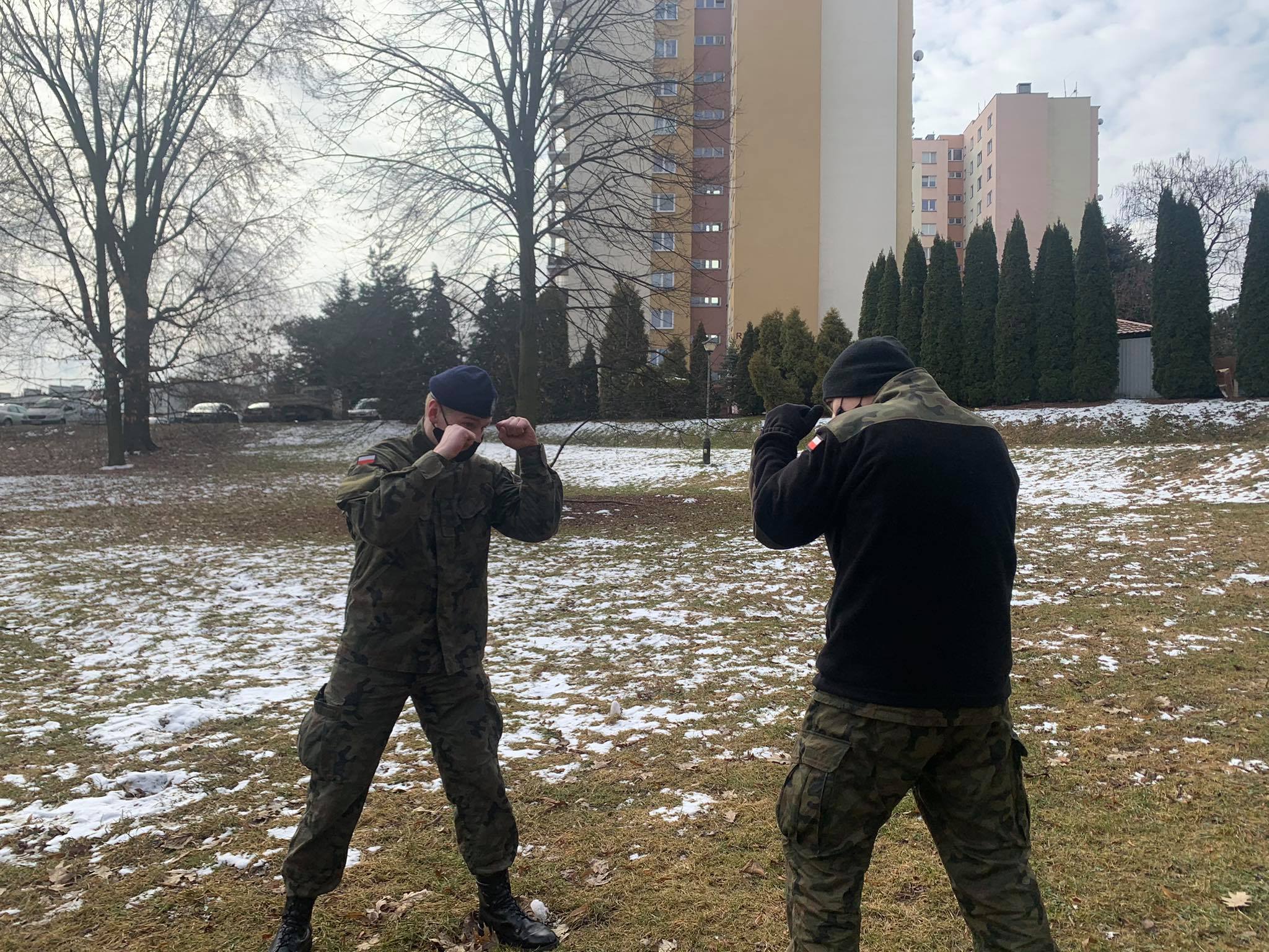 W dniu 10.03.2021 kadeci realizujący program CWKM w ramach zajęć z Edukacji Wojskowej doskonalili swoje umiejętności w dziedzinie samoobrony oraz zajęć taktycznych . Instruktorami byli żołnierze jednostki patronackiej 21 daplot w Jarosławiu.
